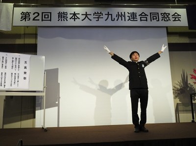 その後、体育会応援団の西本徹氏(応援団リーダー部第41代団長、理学部4年)による“巻頭言”と“五高寮歌”が披露されました。