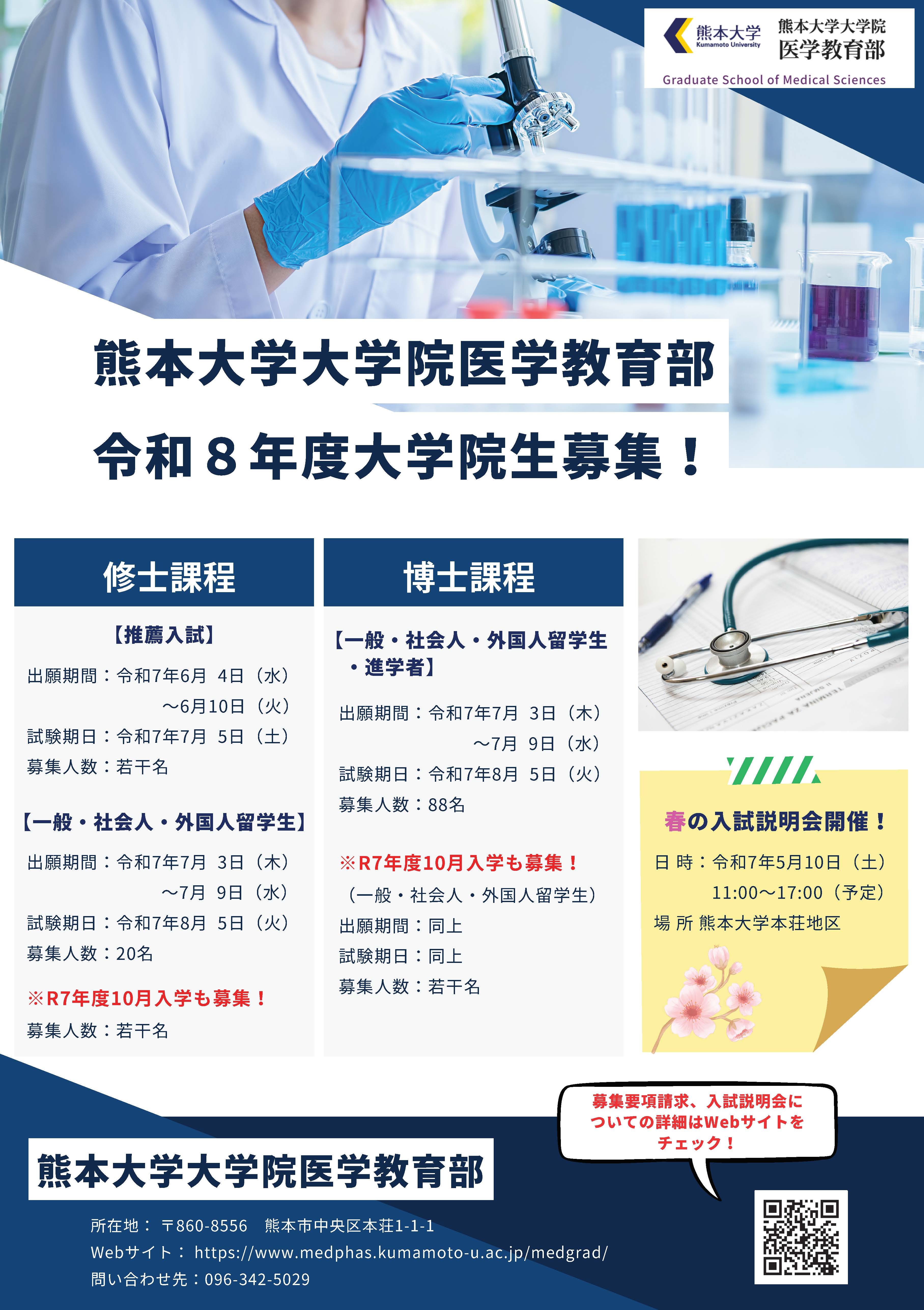 熊本大学大学院医学教育部の入試説明会を開催します。