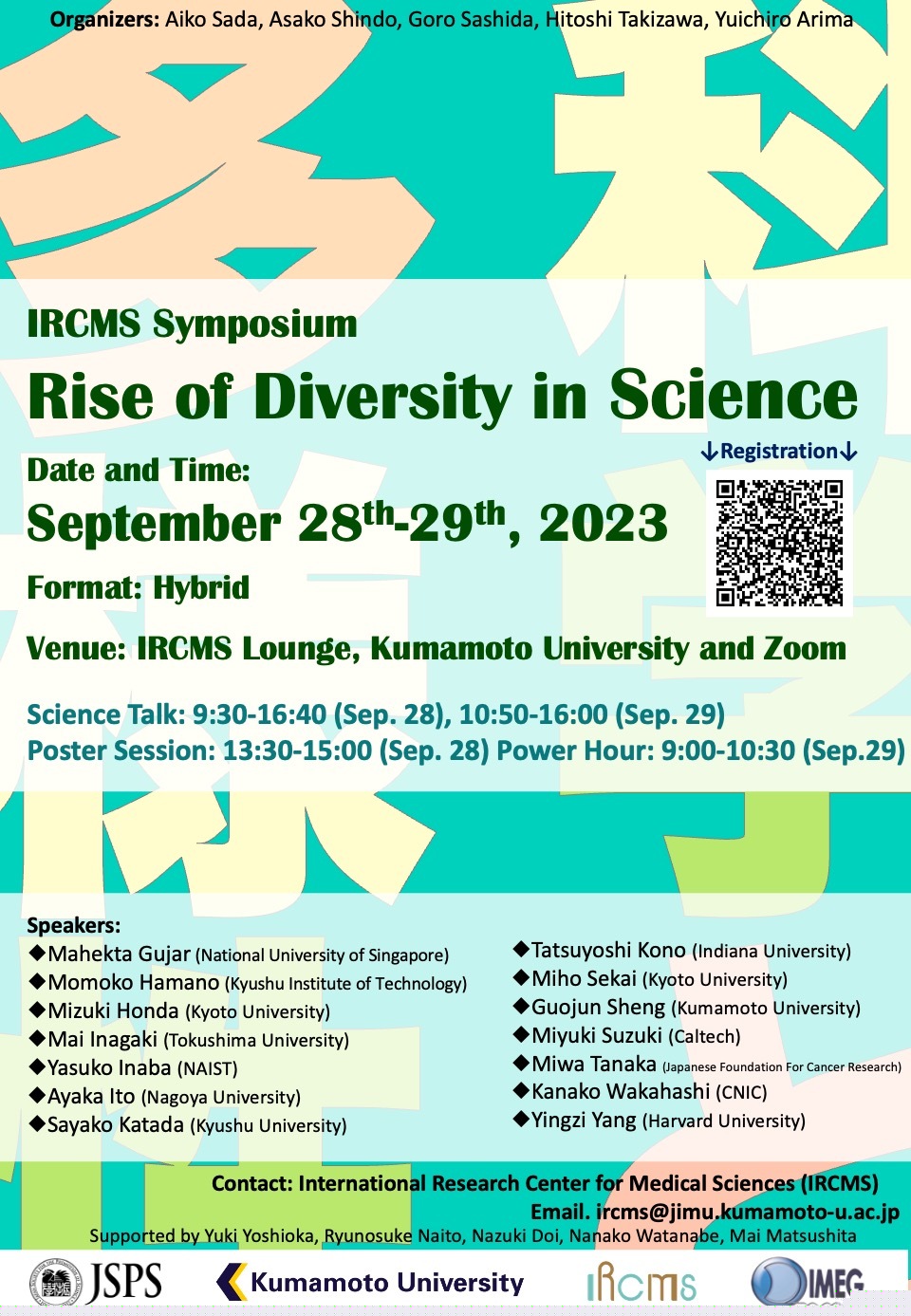 このたび、熊本大学国際先端医学研究機構(IRCMS)では、IRCMS シンポジウム Rise of Diversity in Science(多様性と科学の夜明け)を開催します。