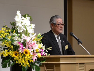 また、引き続き、設立に協力いただいた熊本大学同友会の森正臣代表幹事(昭和36年法文学部卒)から祝辞が、九州連合同窓会の船津昭信顧問(昭和44年理学部卒)と田川憲生顧問(昭和46年法文学部卒)から挨拶が行われ、それぞれから九州連合同窓会に対する期待や今後の発展について言葉が述べられました。