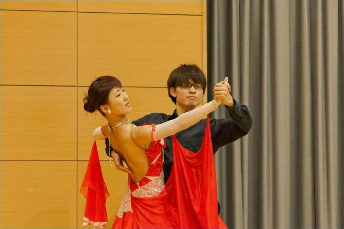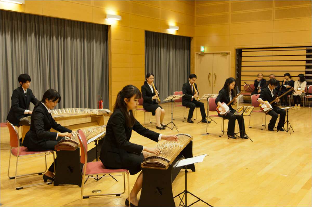 歓迎パーティでは、本学に顕著な功績等を残された卒業生表彰者並びに名誉フェロー授与者のご紹介、谷口学長から本学の近況報告の後、歓迎の意と学生の活動を紹介することを目的に、ジャグリング、舞踏研究部、邦楽部、チアリーディング部、応援団の演舞を披露しました。